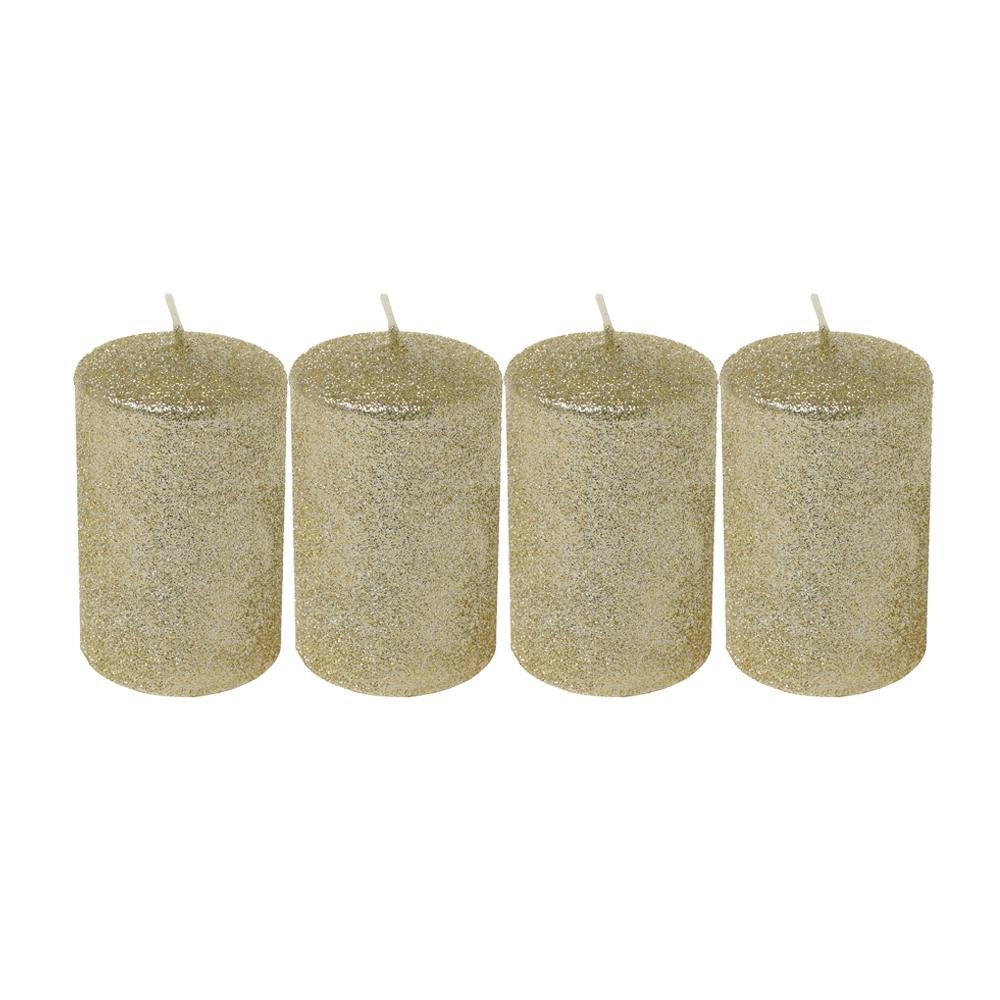Dekorácia Valec 4-pack gliter zlatý 6x9