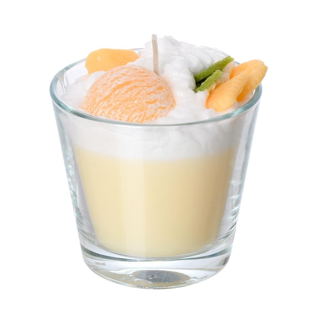 Dekorácia Sviečka dezert v skle krém vanilka 9x9cm