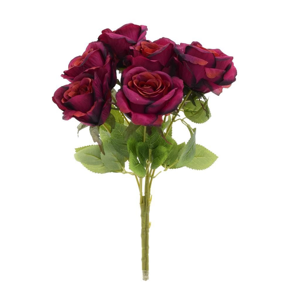 Dekorácia Kytica ruža x7 40cm tm.červená
