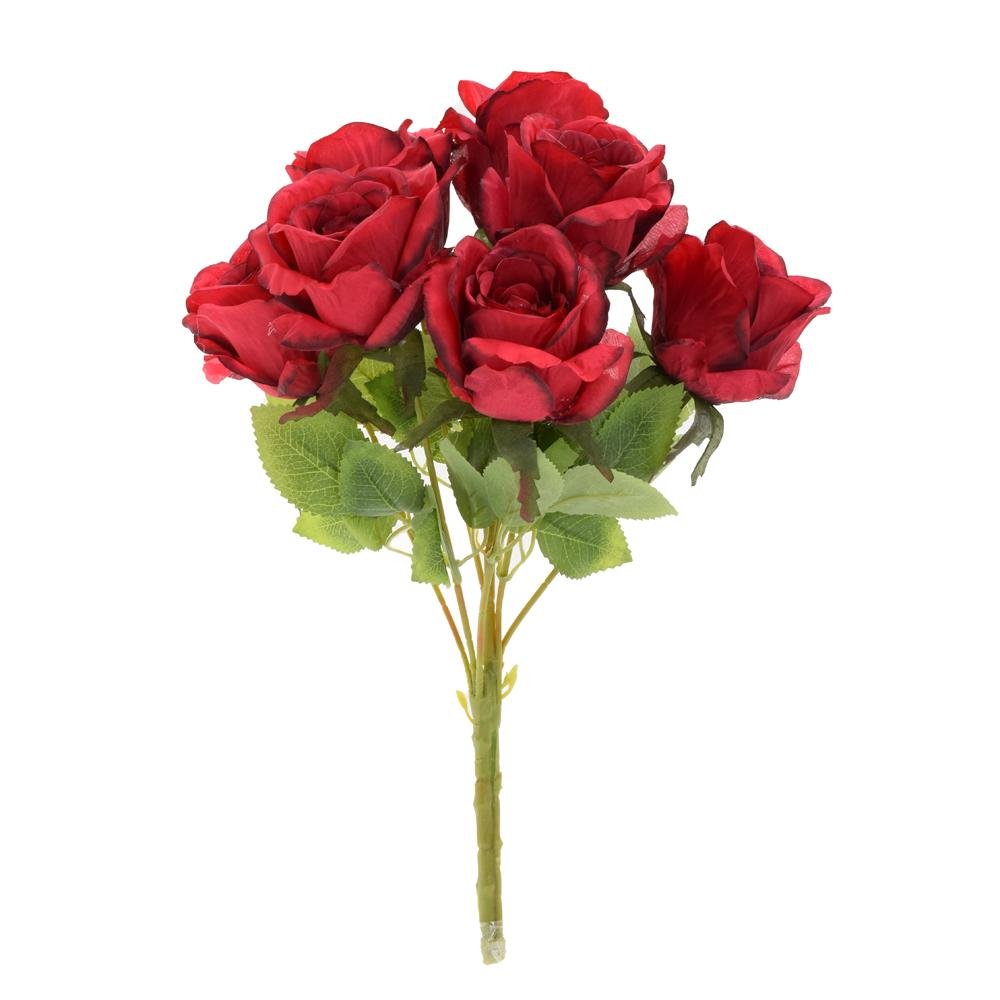 Dekorácia Kytica ruža x7 40cm červená