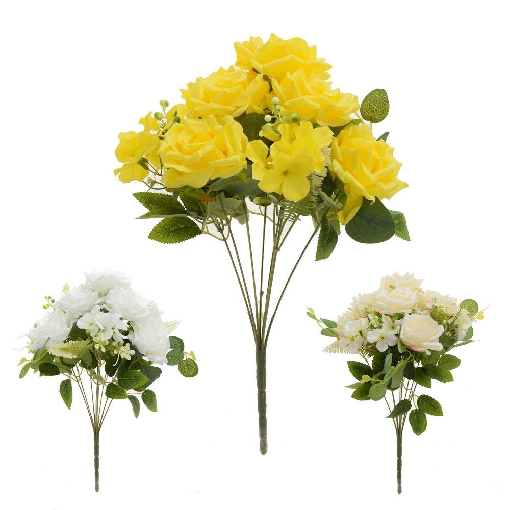 Dekorácia Kytica ruža, drob.kvety mix/3f 43cm