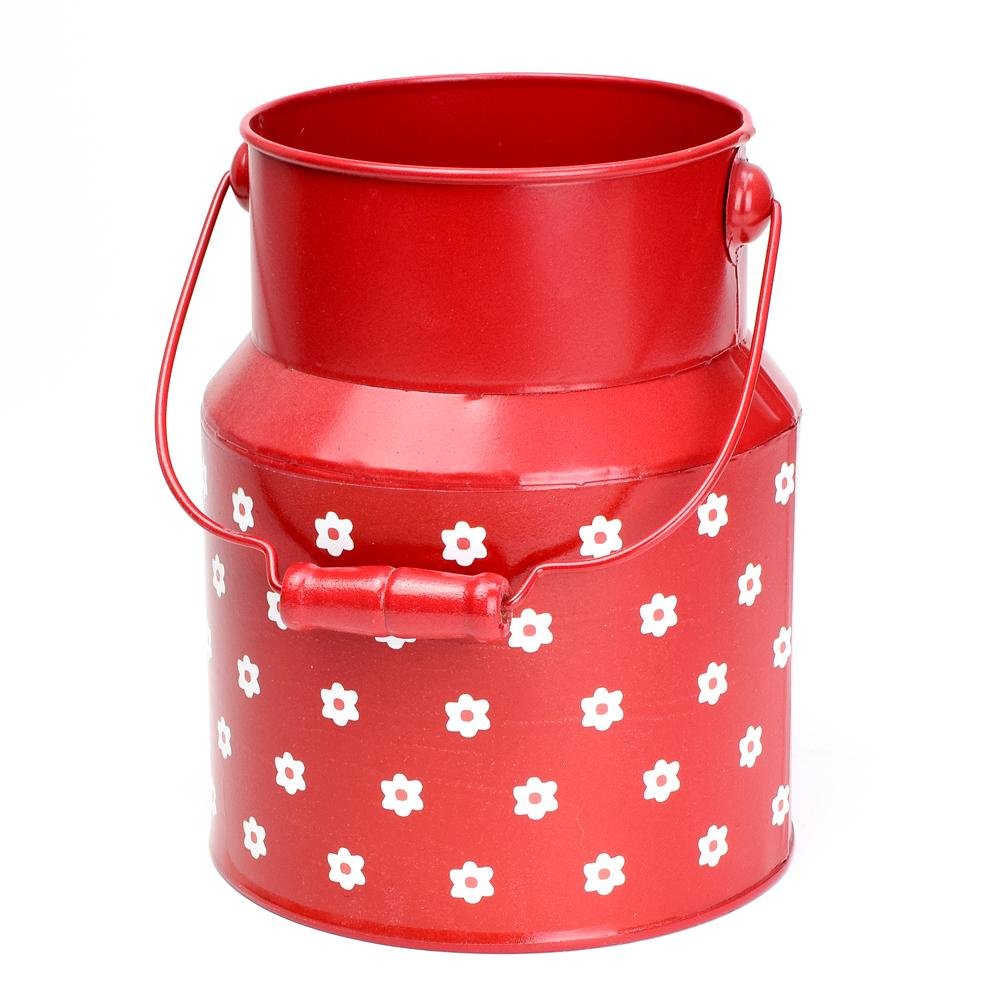 Dekorácia Váza konva kov červená kvety v:18/27,5x12cm