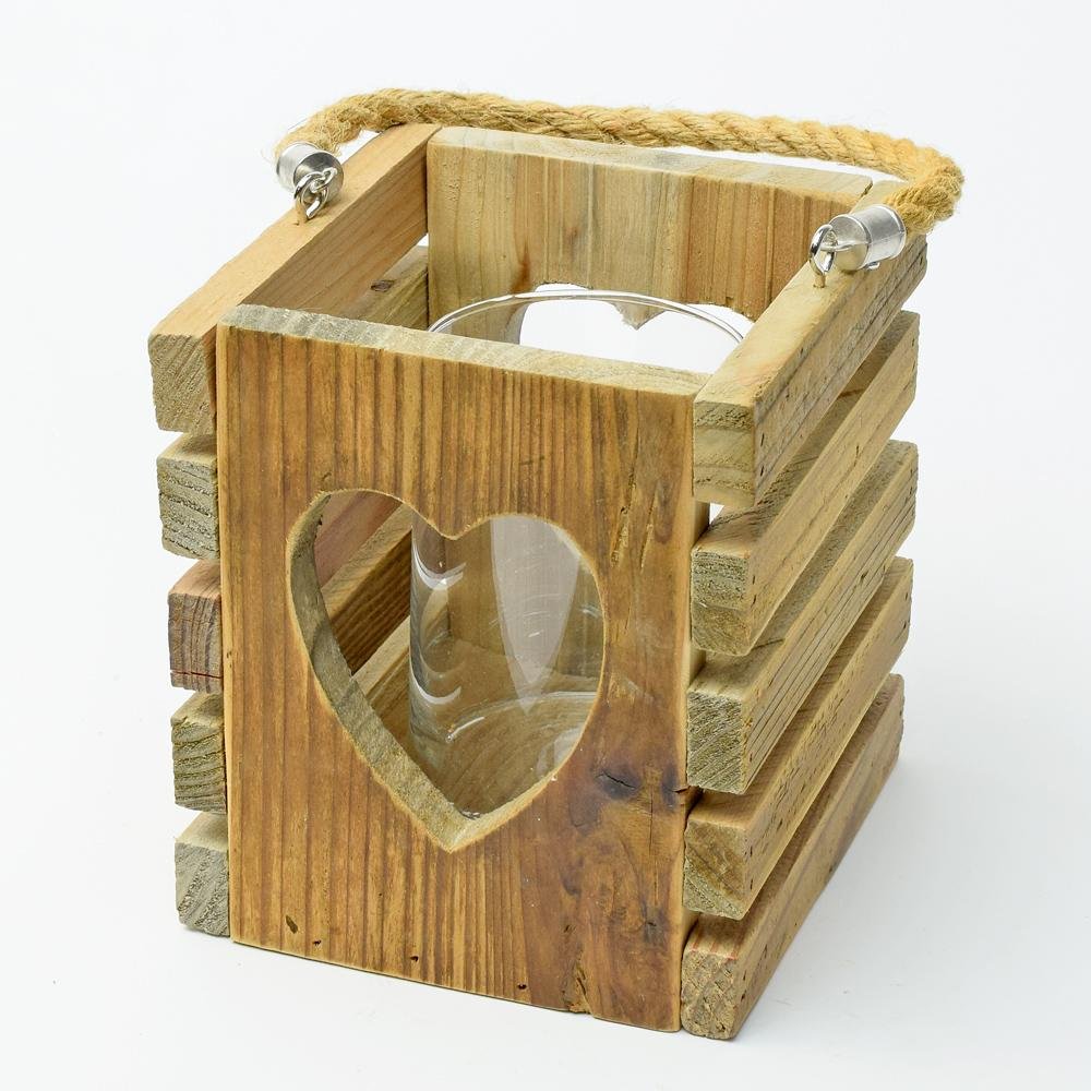 Dekorácia Záves svietnik srdce drevo natur 143,5x14,5x18cm