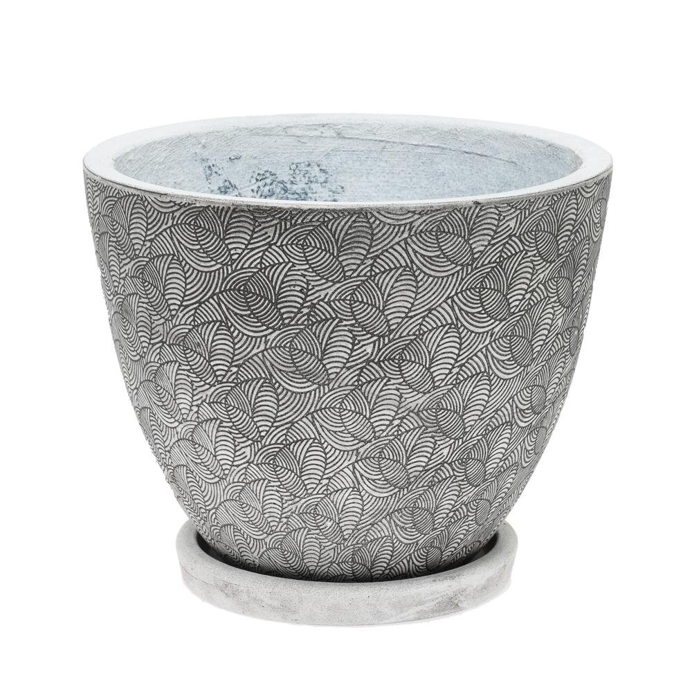 Dekorácia J81 kvetináč + miska okrúhly leaf biela 44h36cm xl
