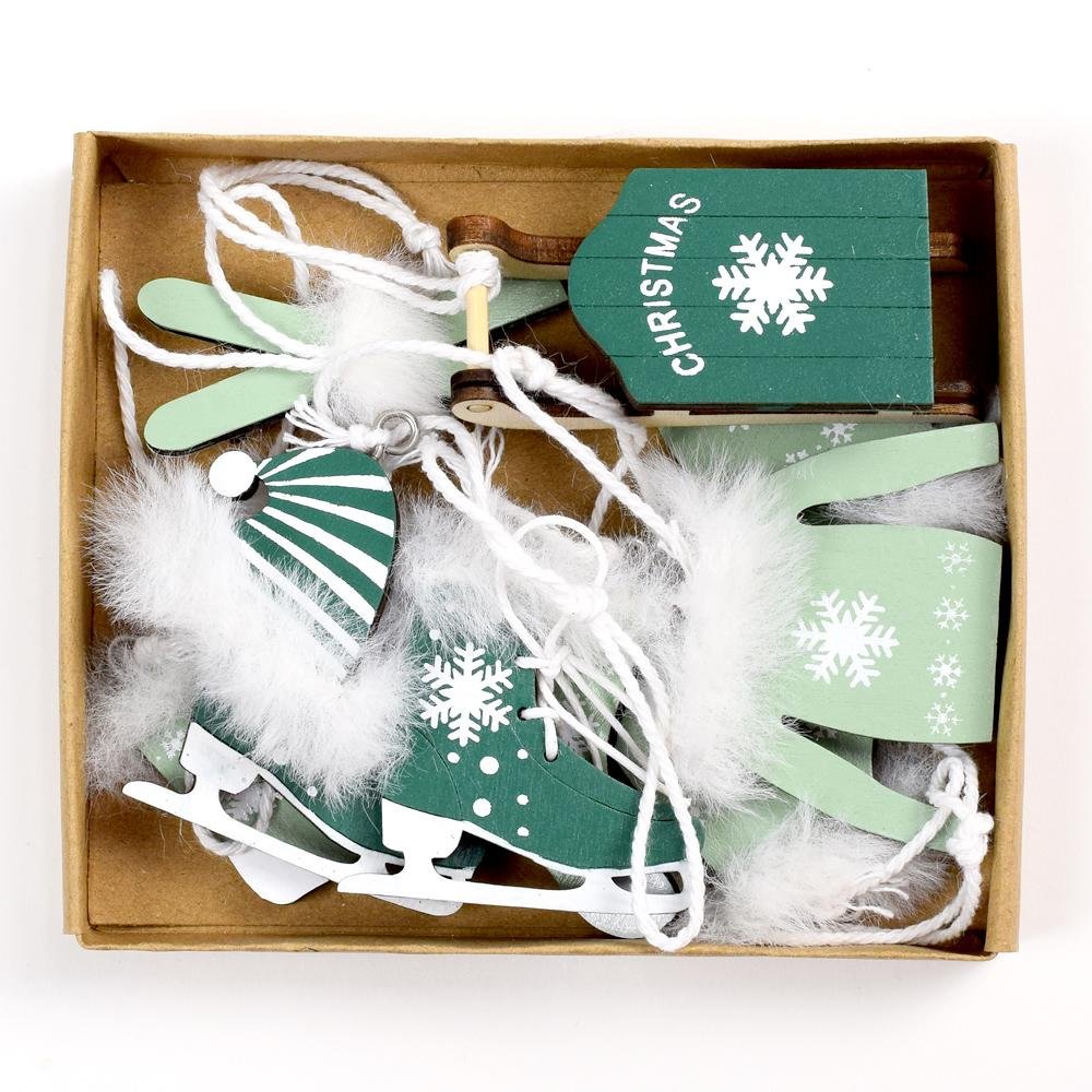 Dekorácia Záves vianočný mix drevo zelený 13x2x11cm