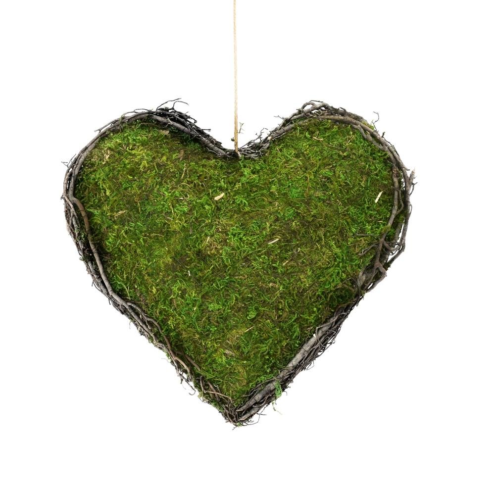Dekorácia Záves srdce prútie mach 26x26x8cm