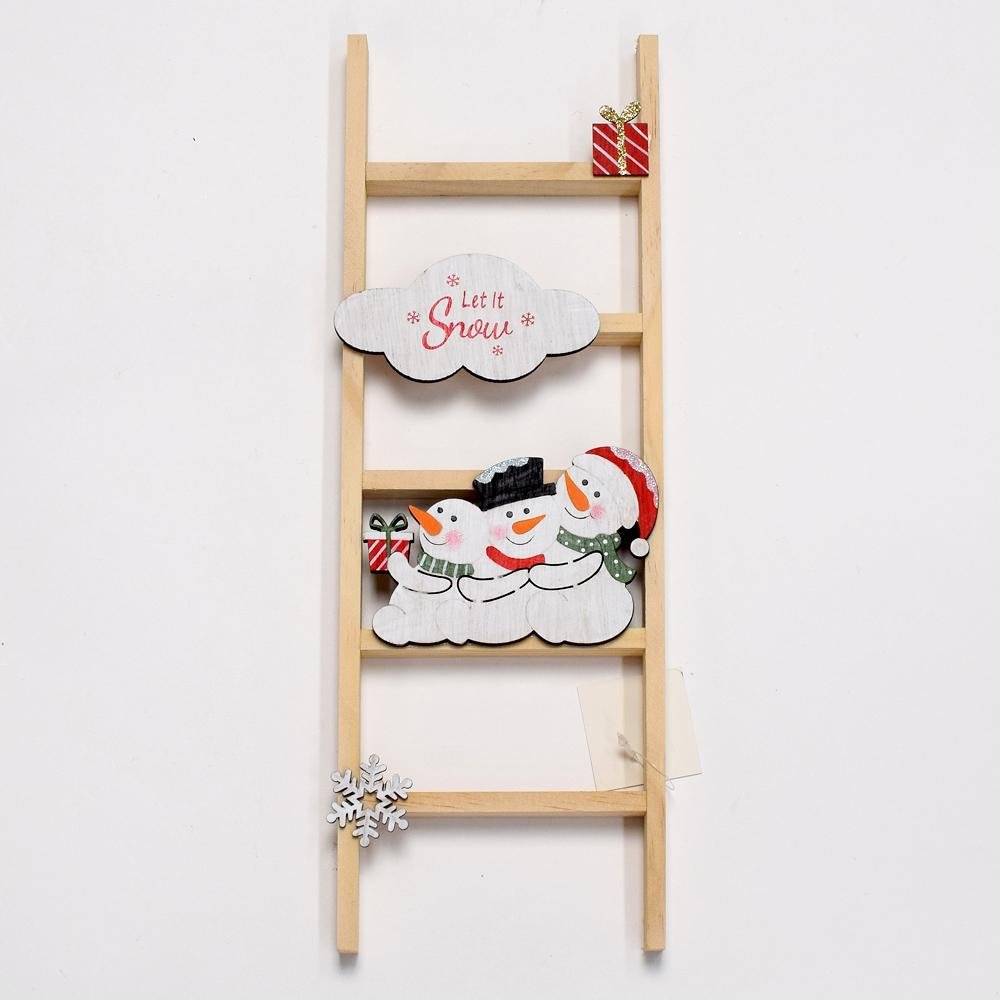 Dekorácia Rebrík snehuliaci drevo natur 12x2x35cm