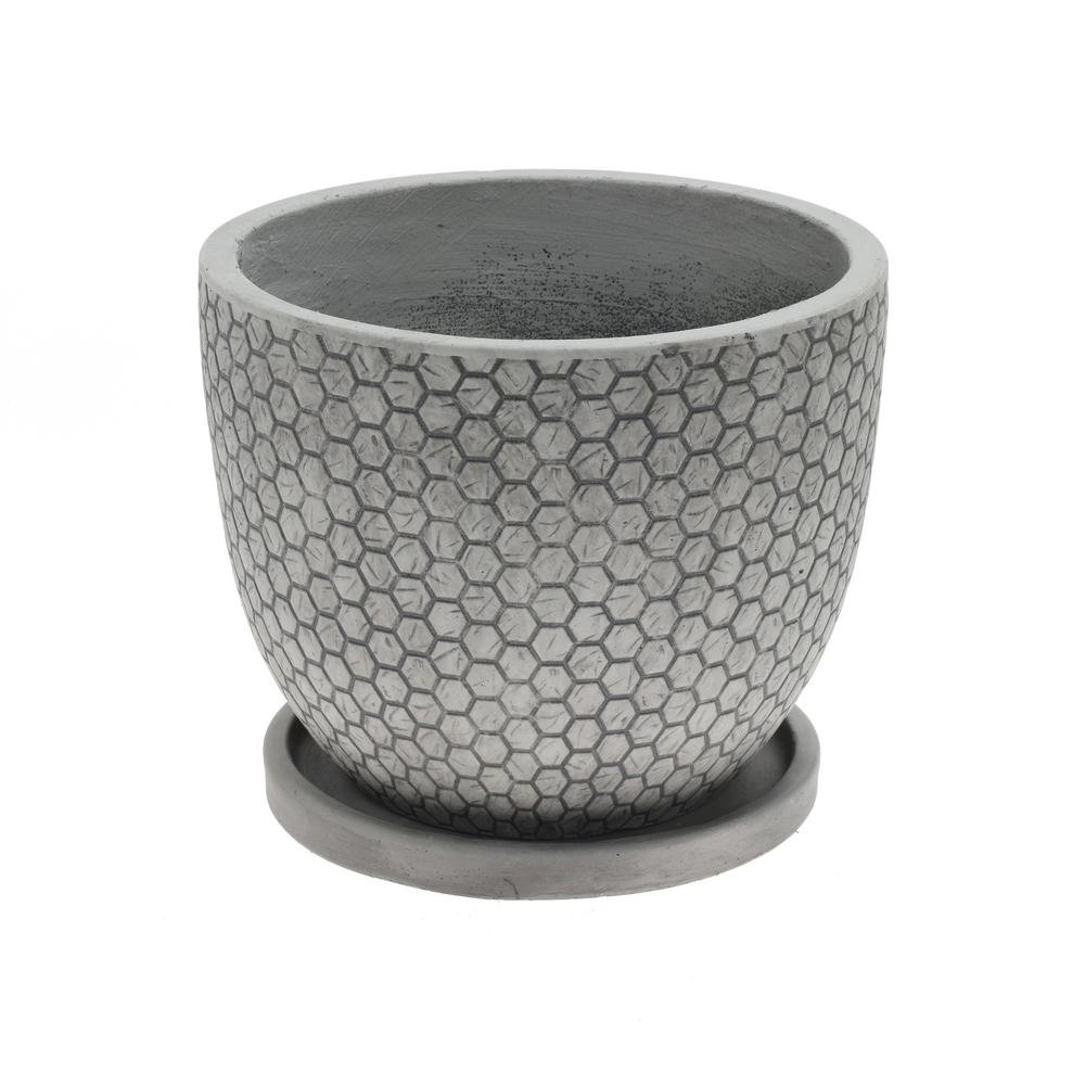 Dekorácia J106 kvetináč+miska okrúhly mila šedá 30x24,5cm m
