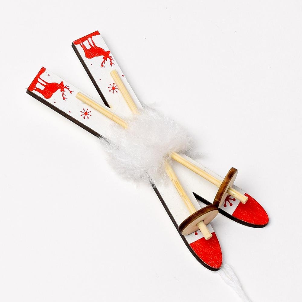 Dekorácia Záves lyže drevo biele 17x3,5x2cm
