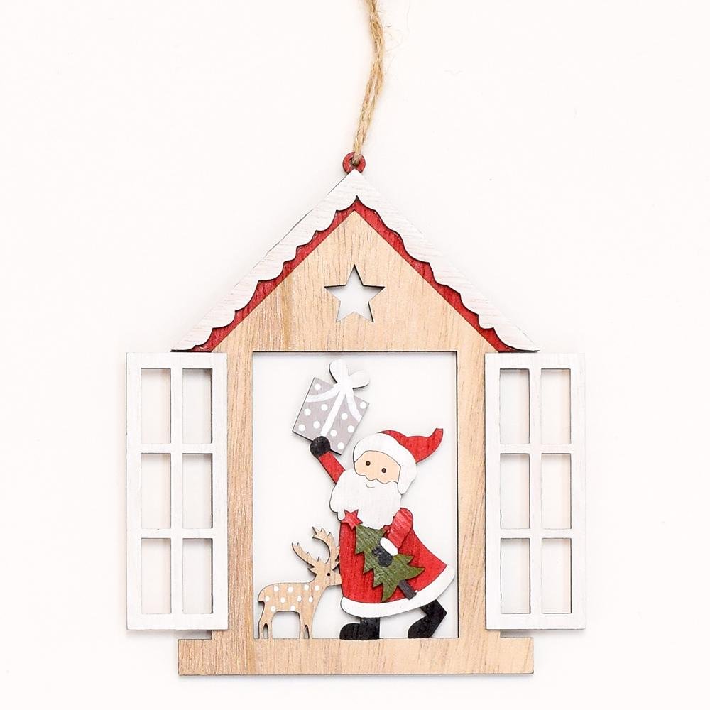 Dekorácia Záves okno santa drevo 13,5x0,8x15,5cm