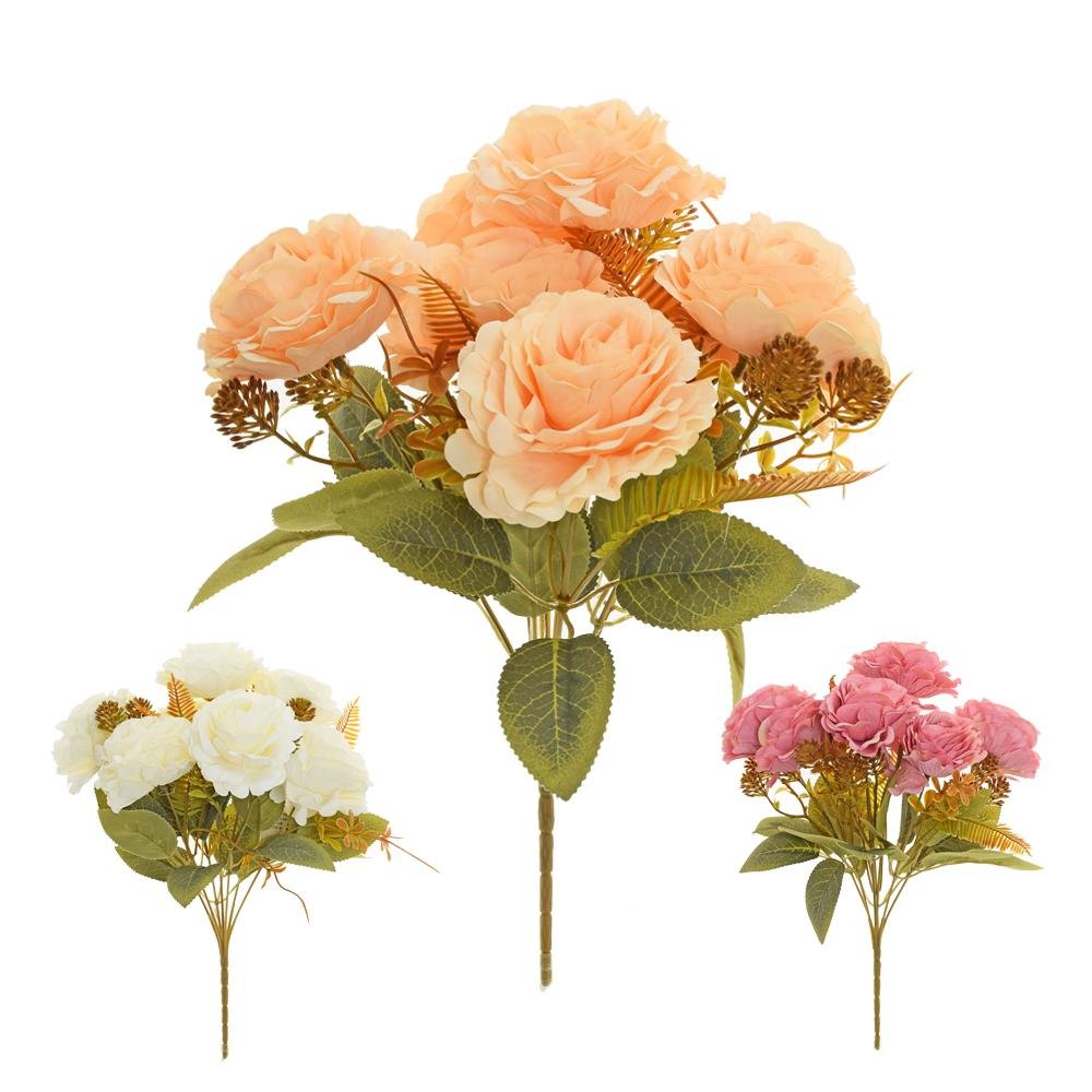 Dekorácia Kytica ruža, zeleň mix/3f 35cm