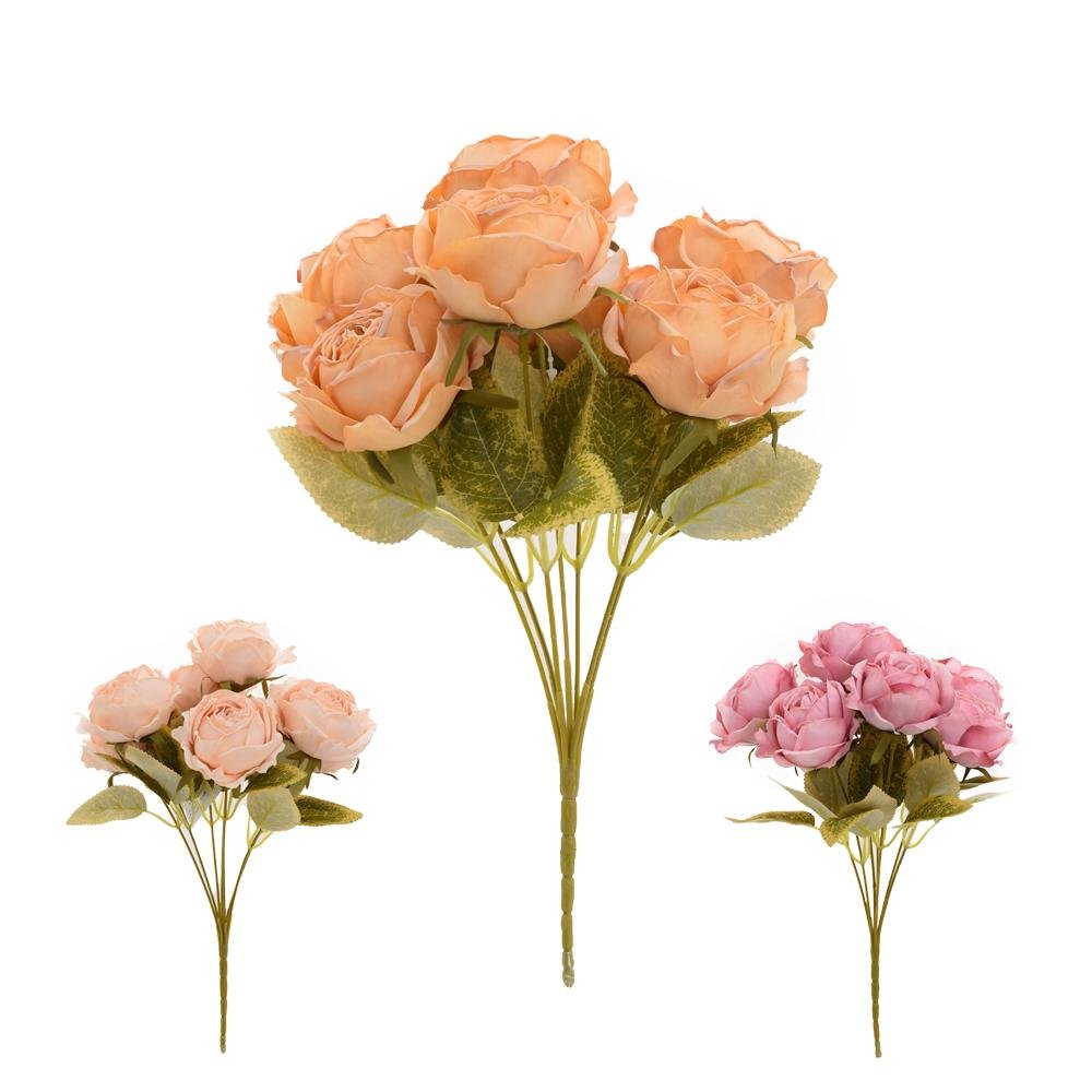 Dekorácia Kytica ruža, drob. kvety, zeleň mix/3f 30cm