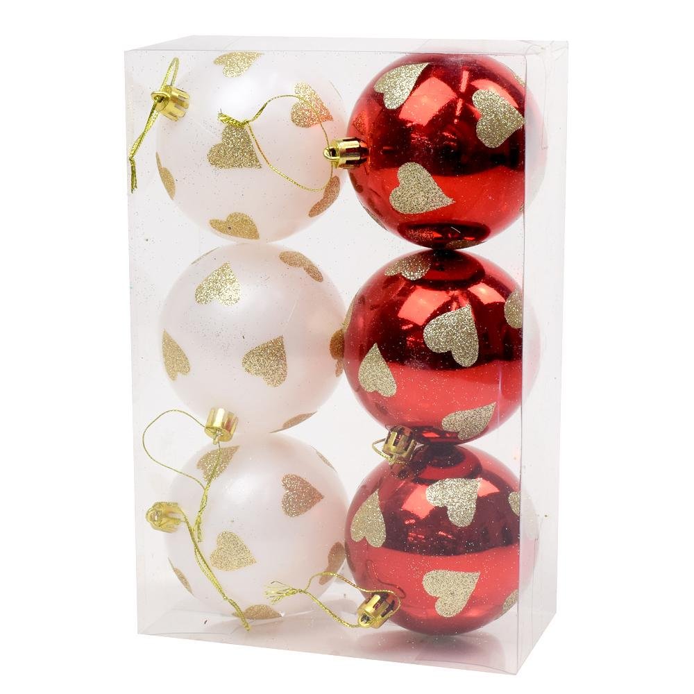Vianočné guličky vzor červ.biele plast s/6 8cm