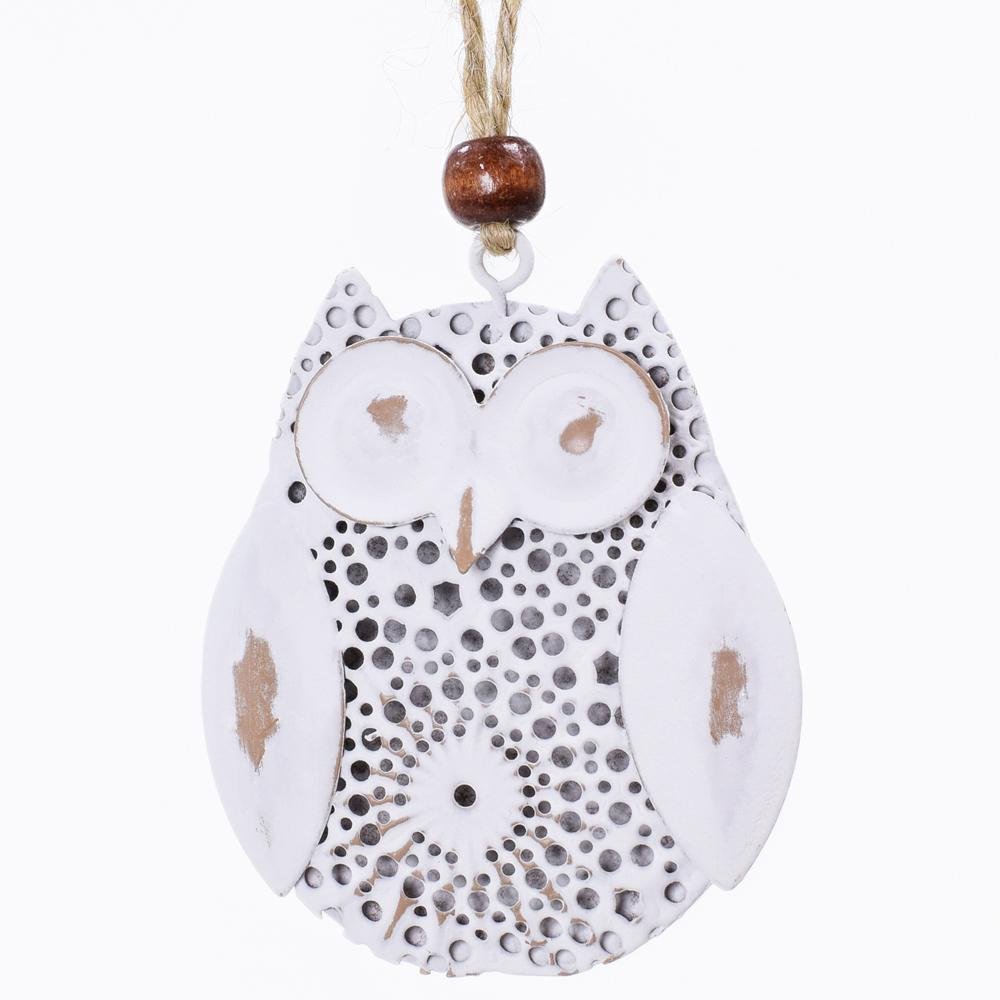Dekorácia Záves sova biela kov 6,5x7,5cm