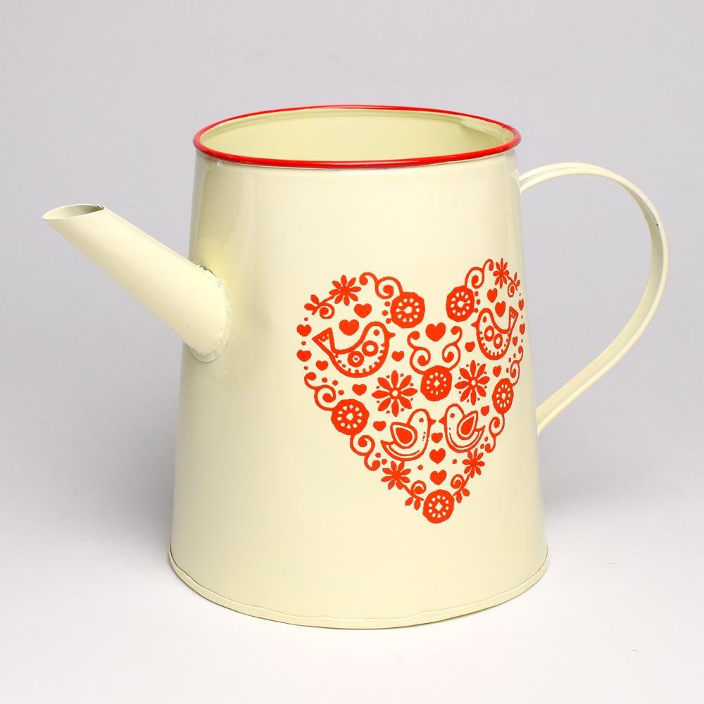 Dekorácia Váza krhla kov červené folk srdce v:18x13cm super cena