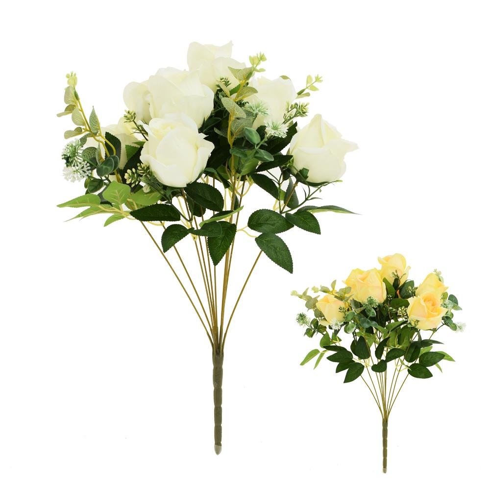 Dekorácia Kytica ruža, eucalypt, zeleň mix/2f 49cm