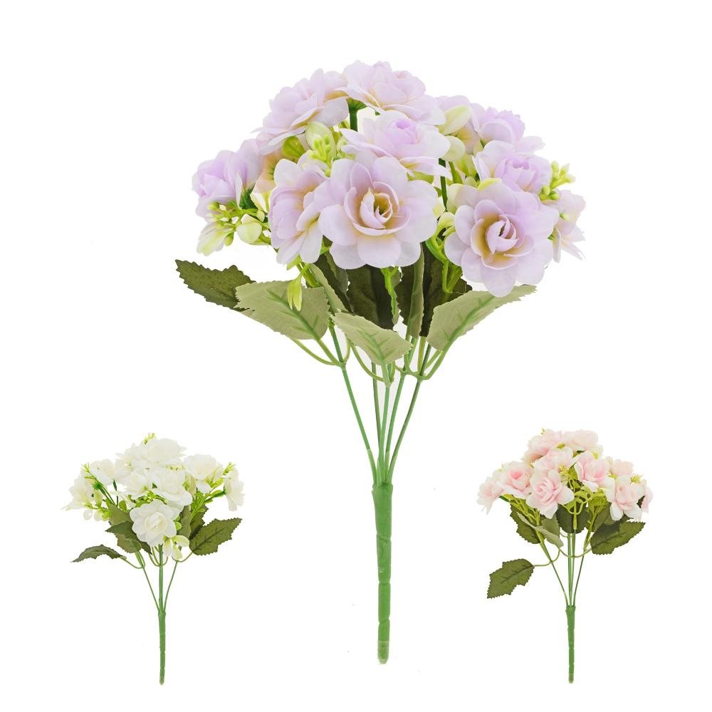 Dekorácia Kytica ruža, zeleň, mix/3f 31cm