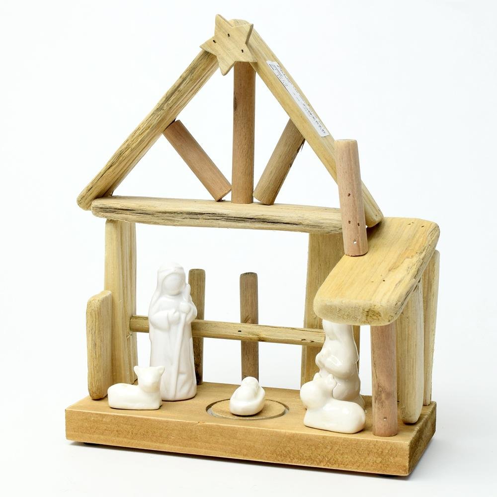 Dekorácia Jasle dom led drevo natur 25x10,5x28cm