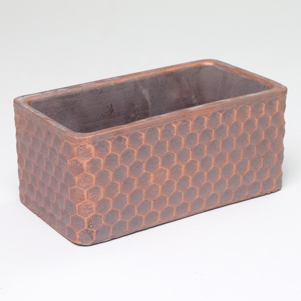 Obal obdĺžnik cement šedý s medenou 20x11x8.8cm