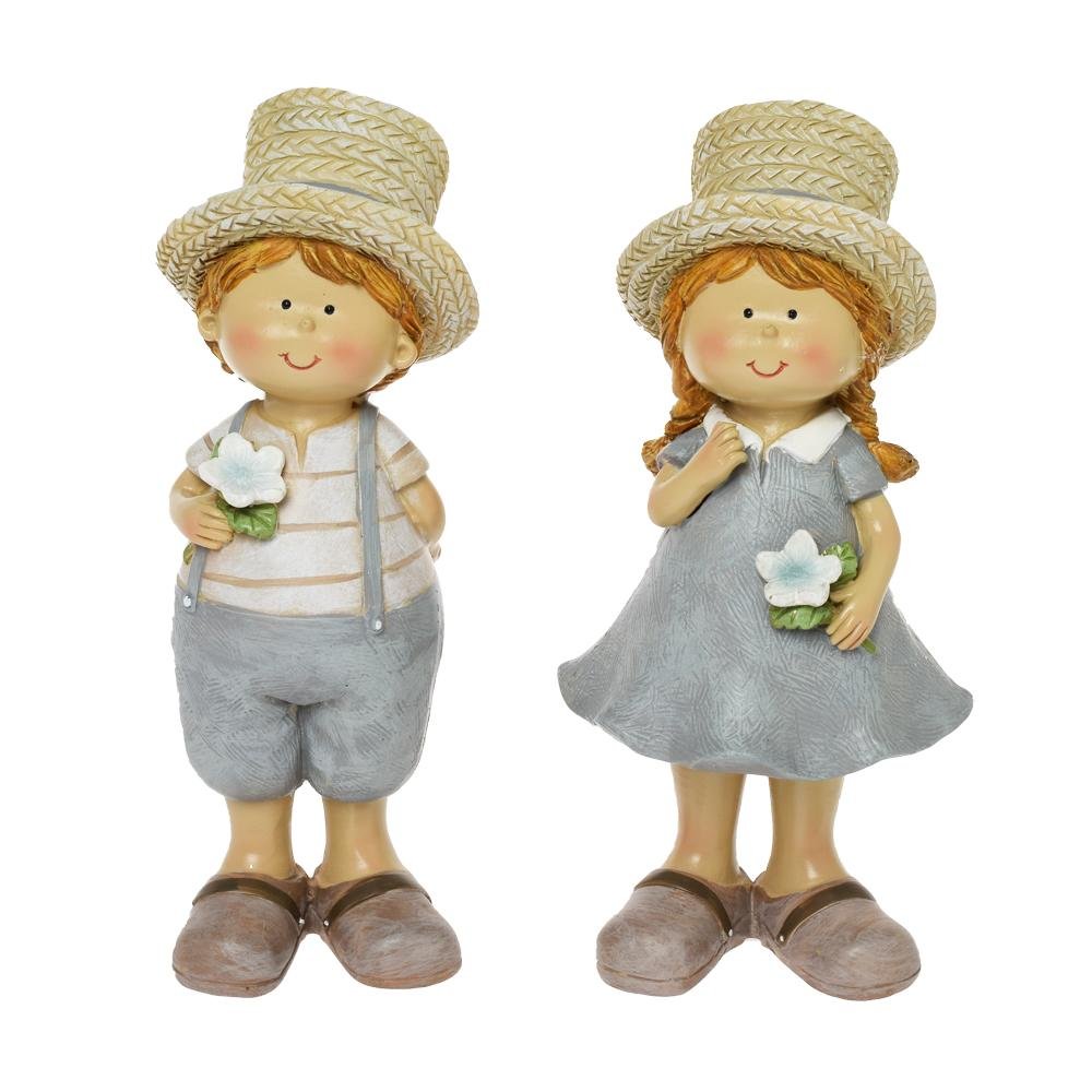 Dekorácia Deti v slamenom klobúku polyrez 8x7x21,5cm krém mix/2