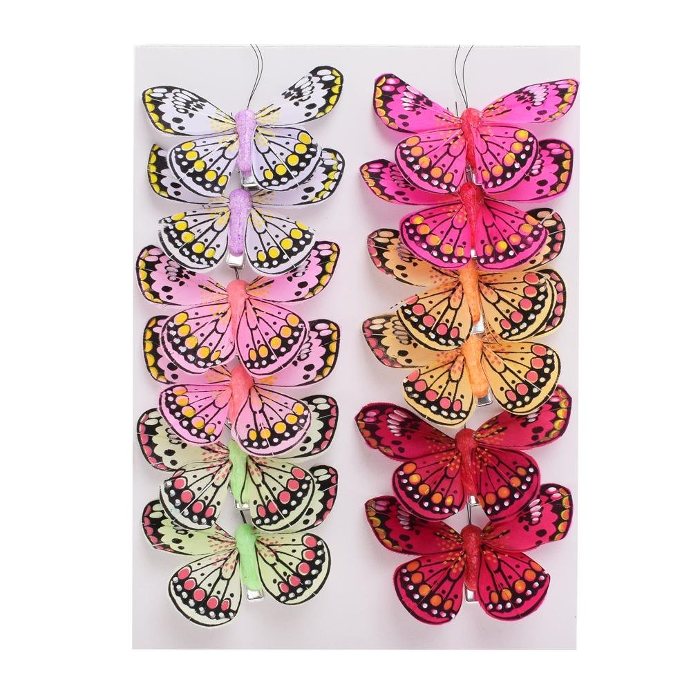 Dekorácia Motýle farebné na klipe 7cm s/12