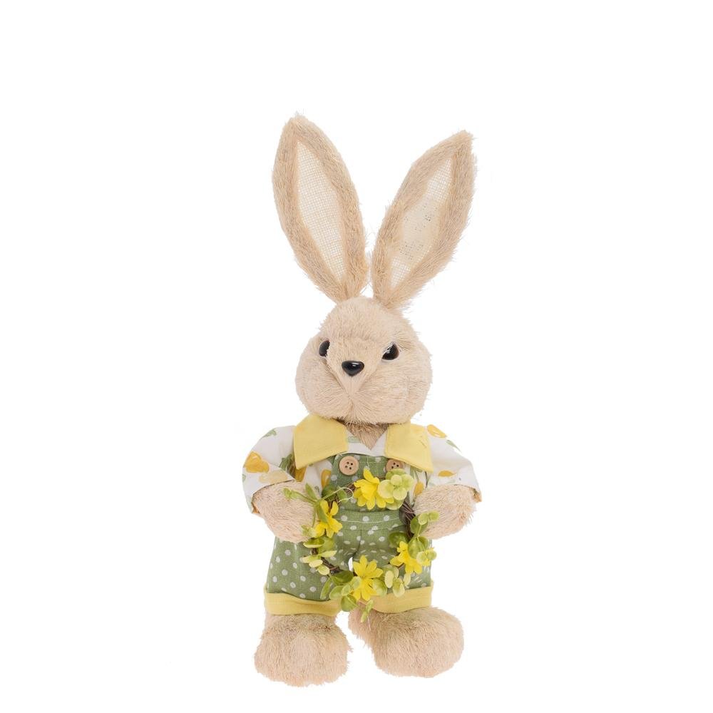 Zajac s venčekom béž/zel/žlt slama 18*16*44cm