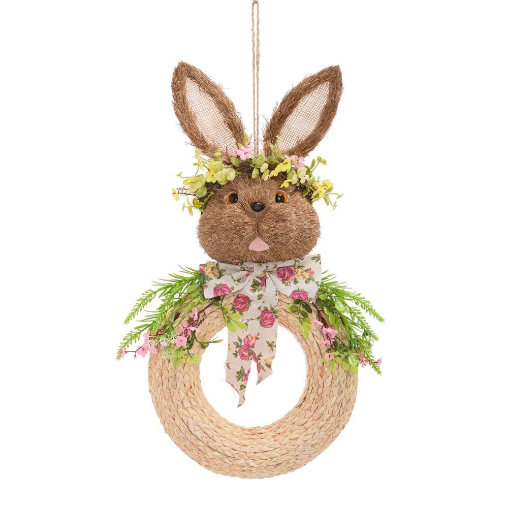 Záves veniec zajac s kvetmi slama 29*60cm