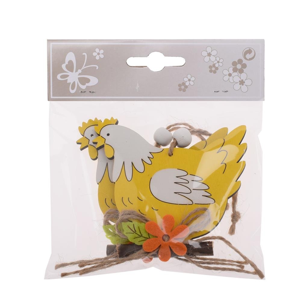Záves kura žlt/bie drevo s/2 8,5*8,3cm