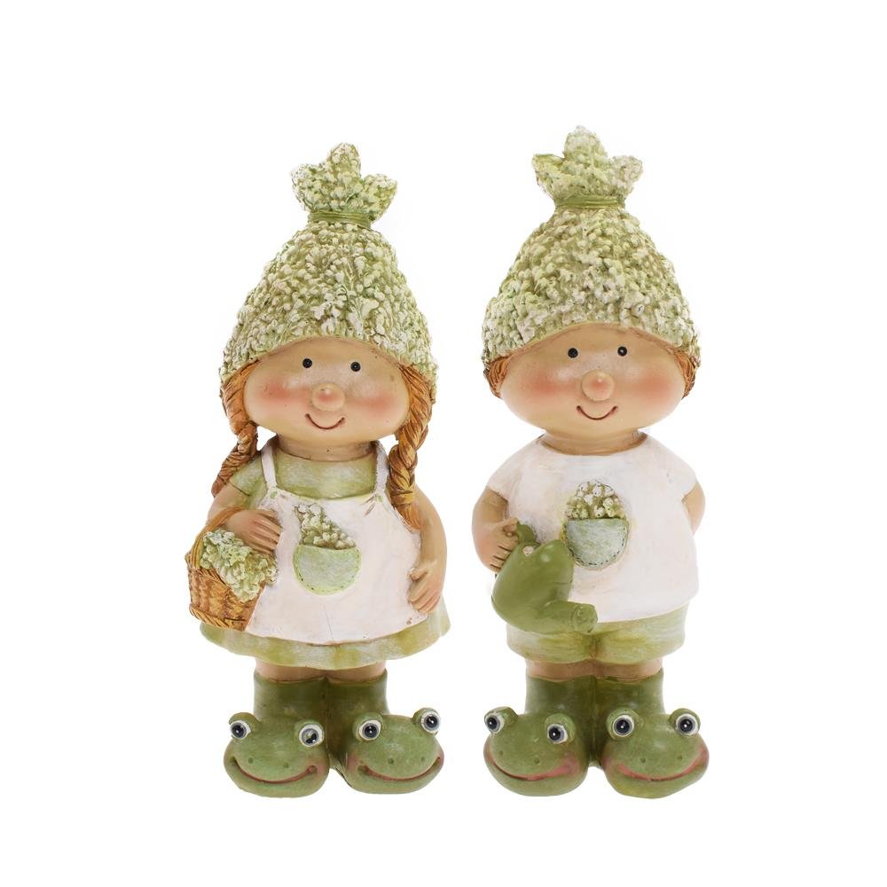 Dekorácia Deti zeleno-biele so žabkami mix/2 poly 5,5*6*16cm