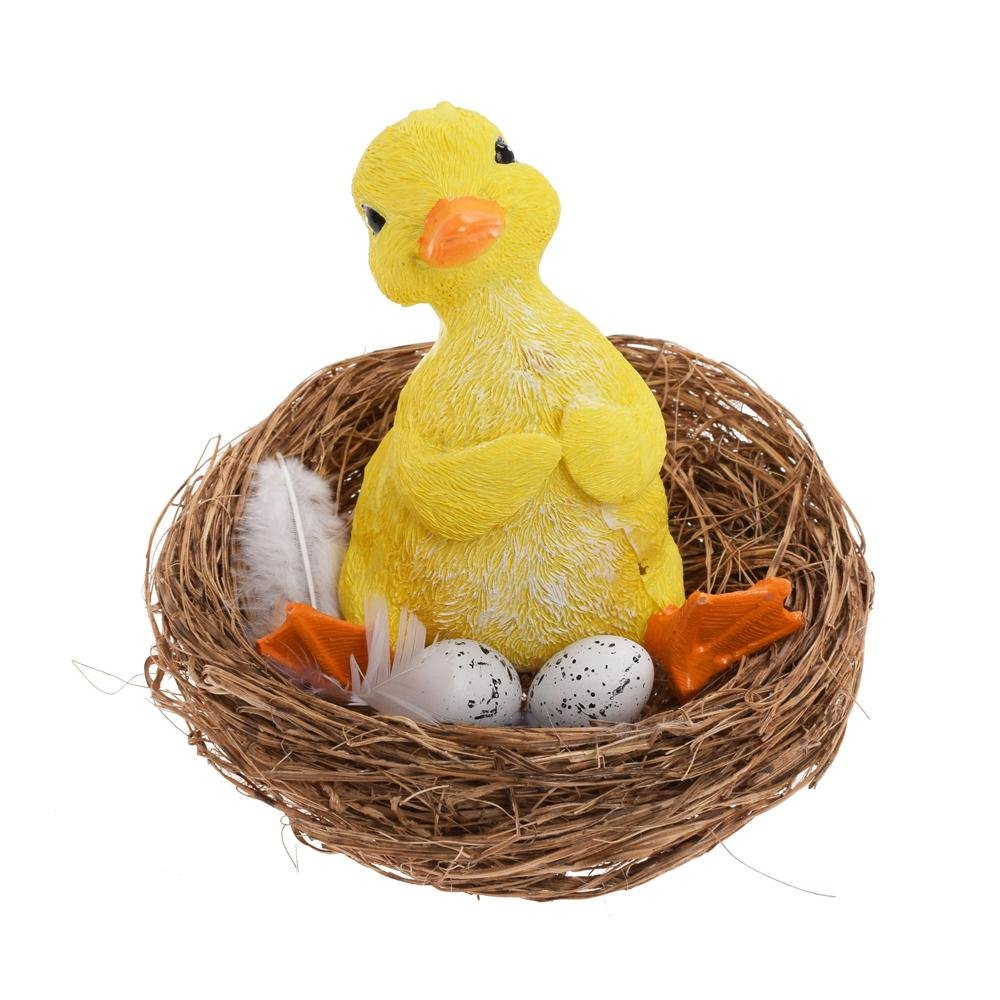 Dekorácia Kačiatko v hniezde s vajíčkami poly 12x12x11cm