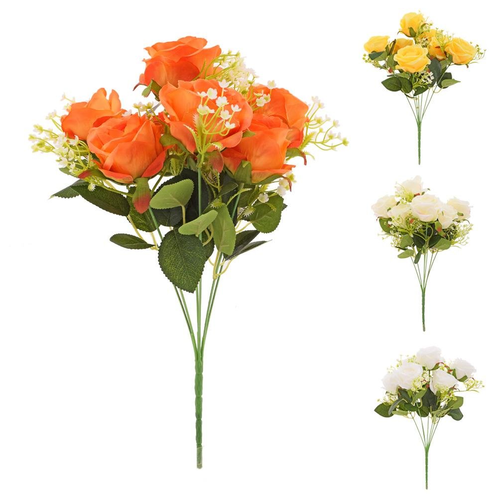 Dekorácia Kytica ruža, drob.kvety, zeleň mix/4f 35cm