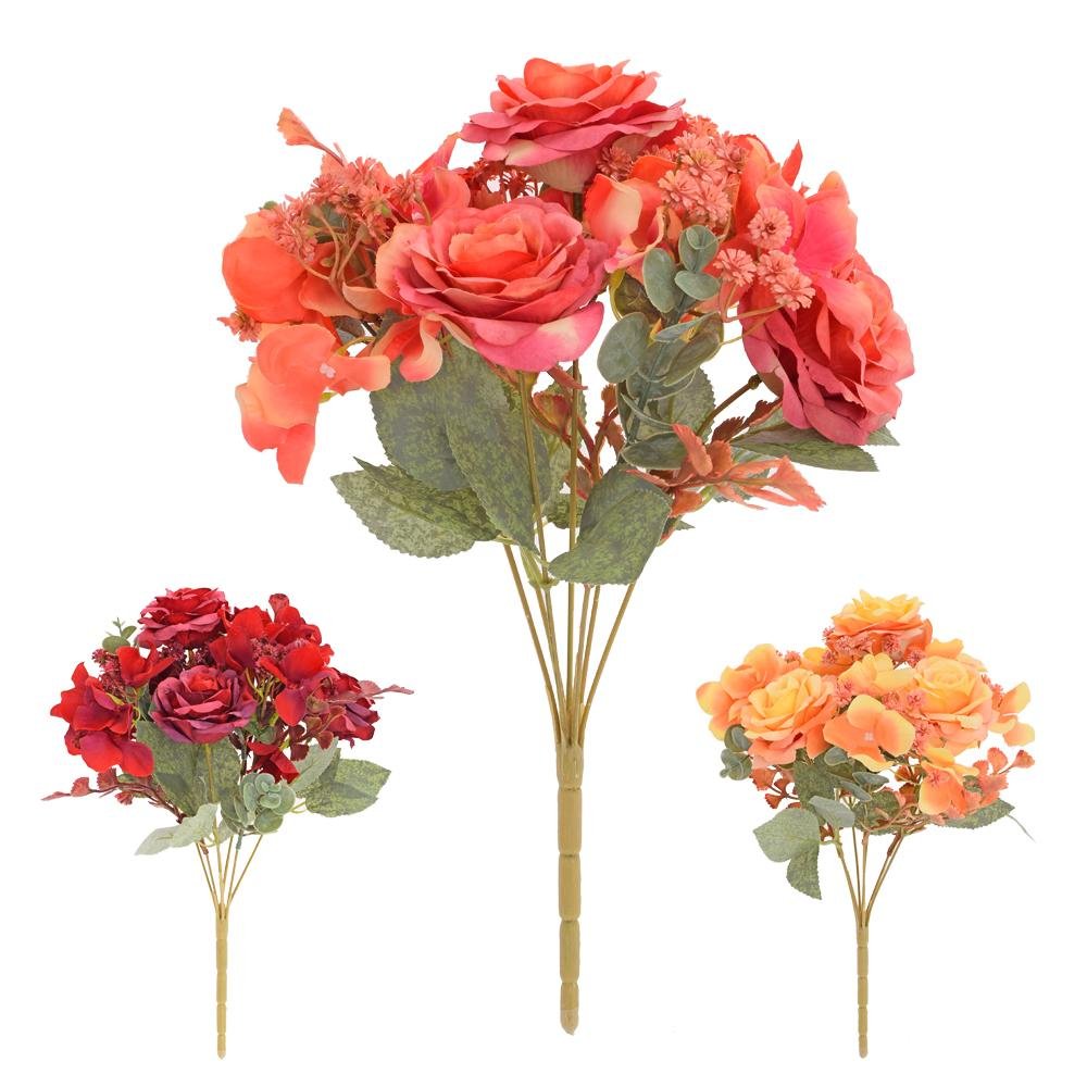 Dekorácia Kytica ruža x7 36cm mix/3f jesenné f