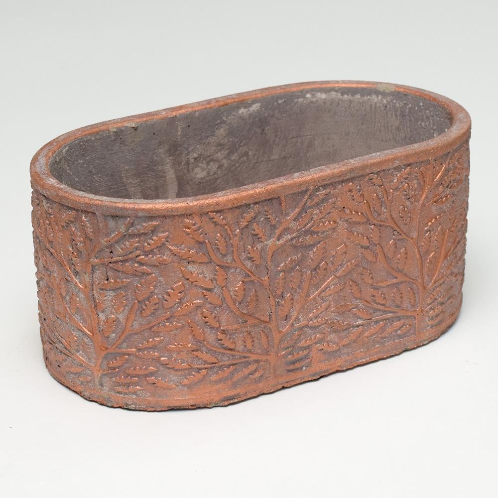 Obal oval cement šedý s medenou 20x11x8.8cm