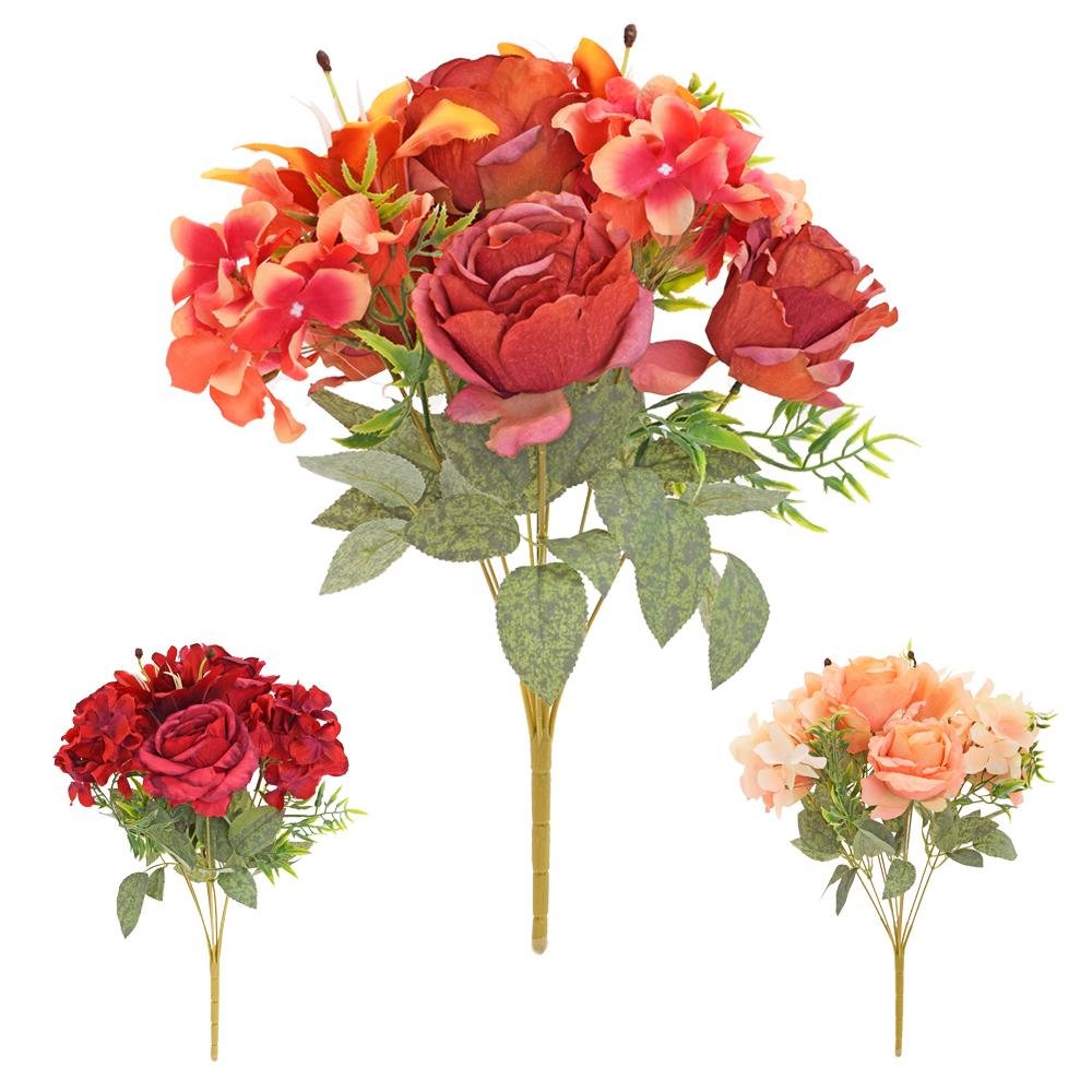 Dekorácia Kytica ruža ľalia hortenzia x9 45cm mix/3f jesenné f