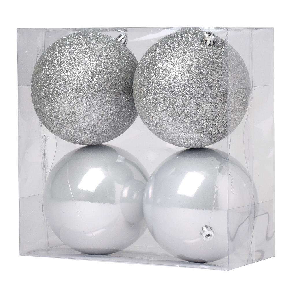 Dekorácia Gule vian. plast s/4 12cm strieborné mix2
