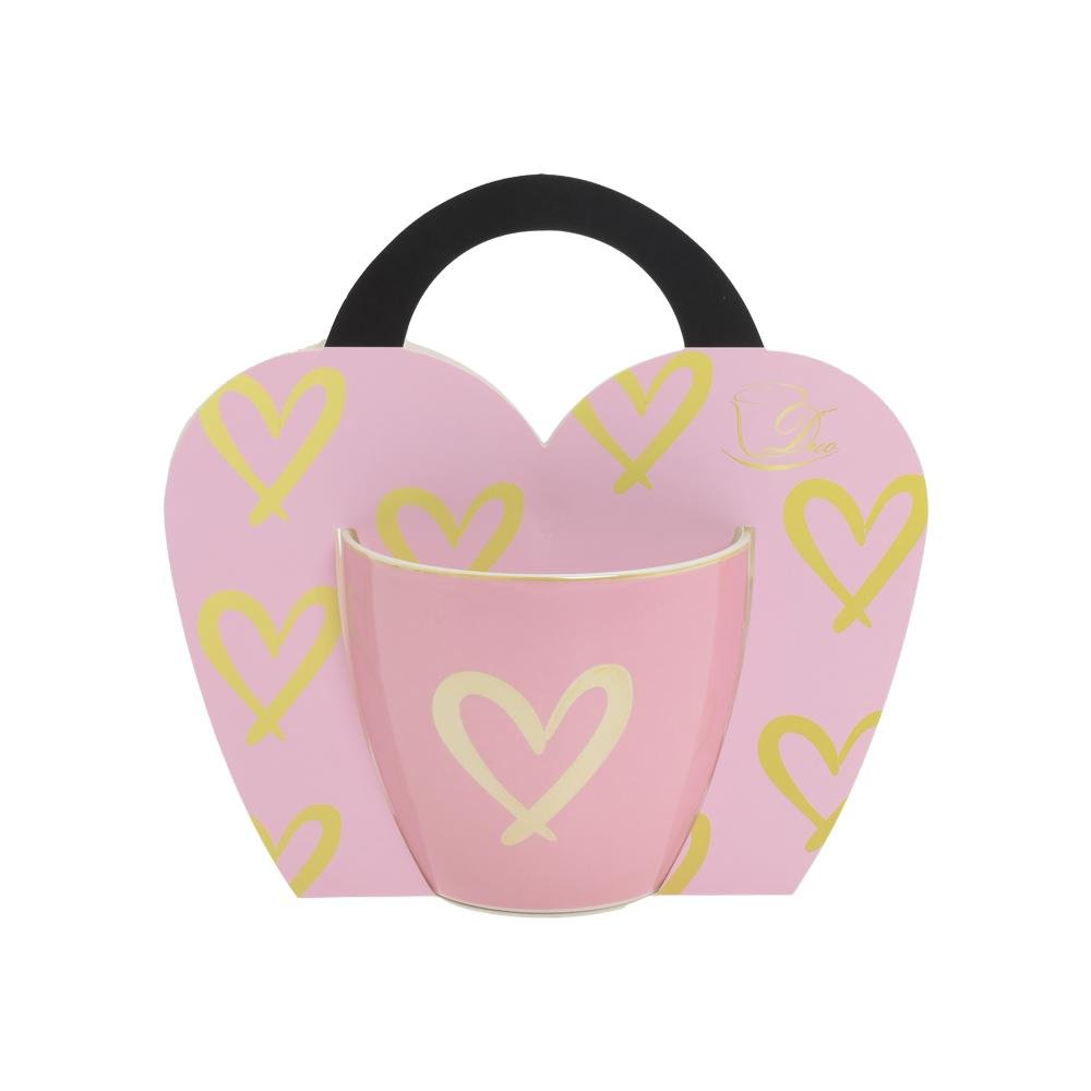 Dekorácia Šálka 460ml ruž/zlaté srdiečka
