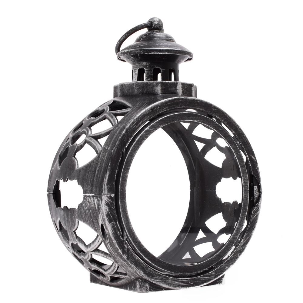 Lampáš okrúhly prázdny s dvierkami strieb. 22x17x10cm