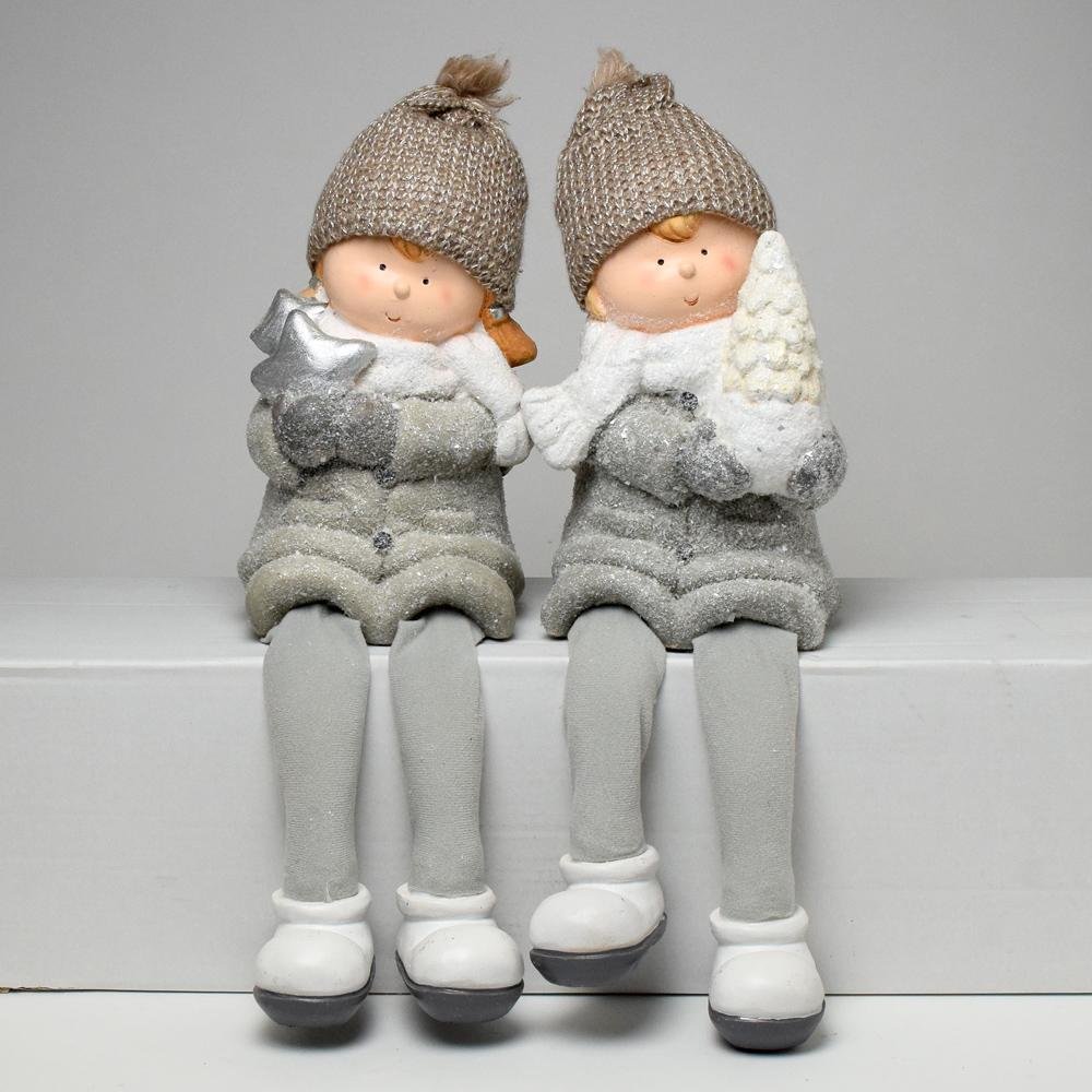 Dekorácia Deti visiace nohy šedé 18,5x17x28cm