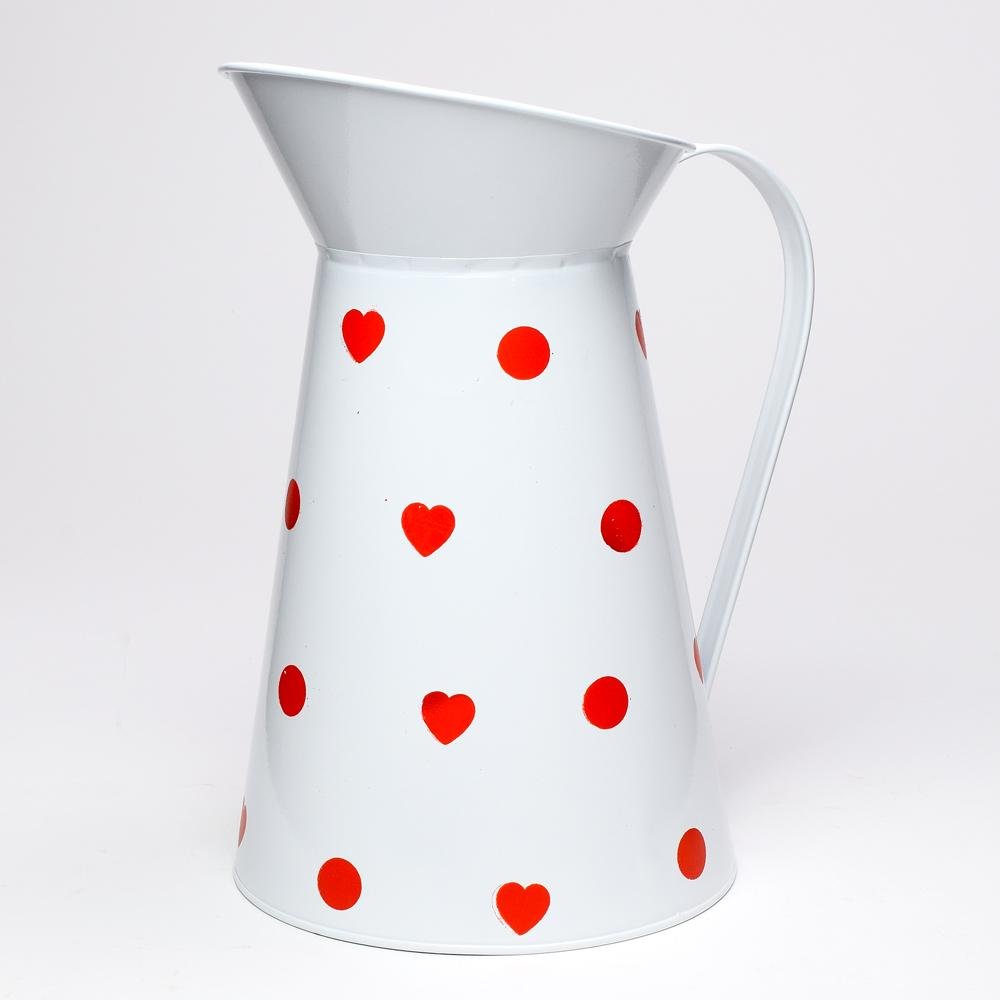 Váza džbán veľký kov biely veľké bodky v:26,5x15,5cm super cena