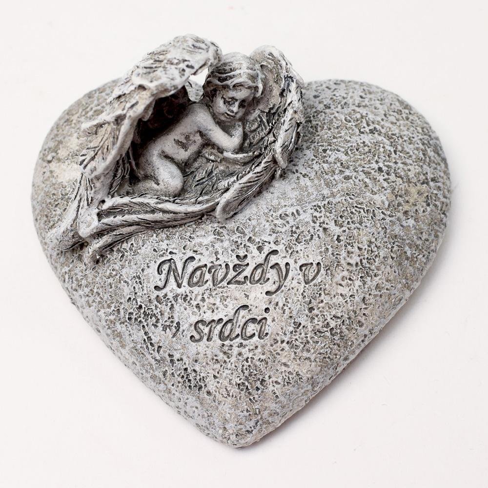 Srdce s anjelom sivé 7,5x7x4,5cm polyres