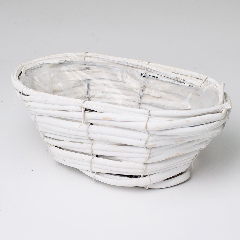 Dekorácia Obal oval prútie biely 25x13x9cm