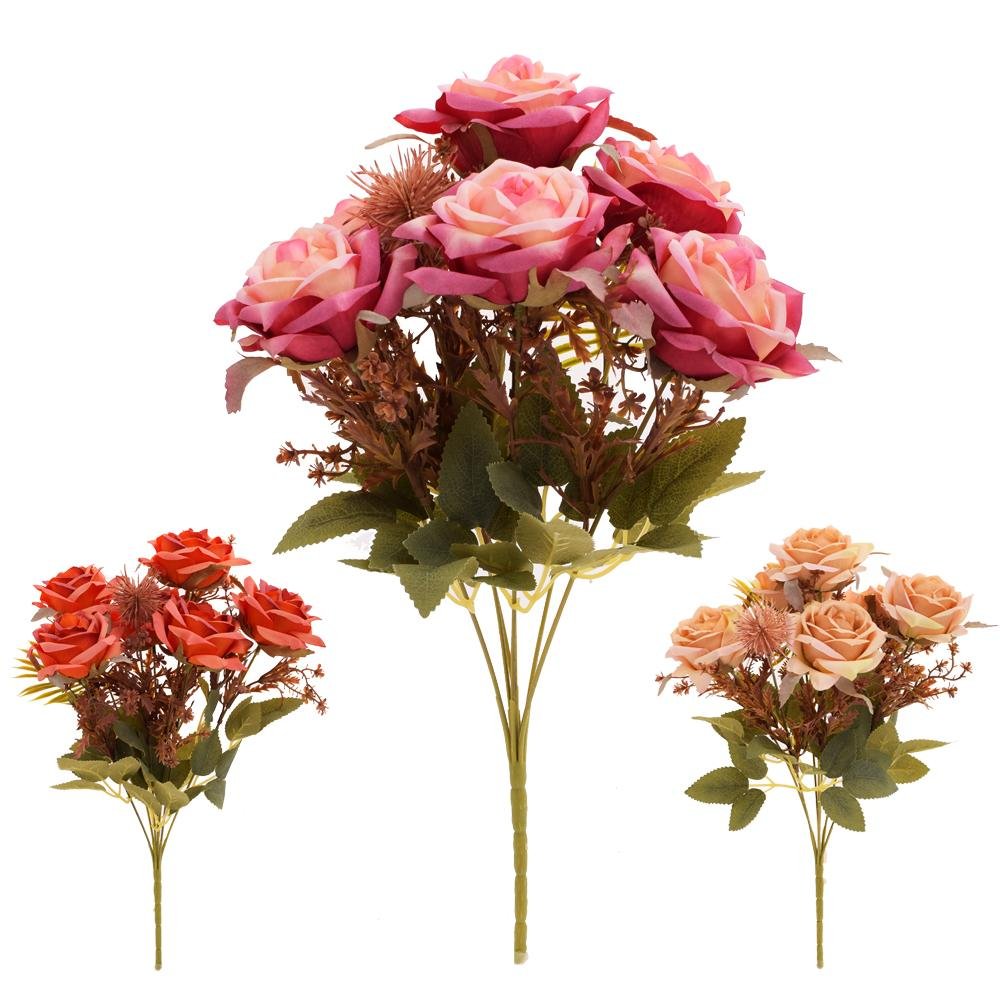 Dekorácia Kytica ruža x7 38cm mix 3f