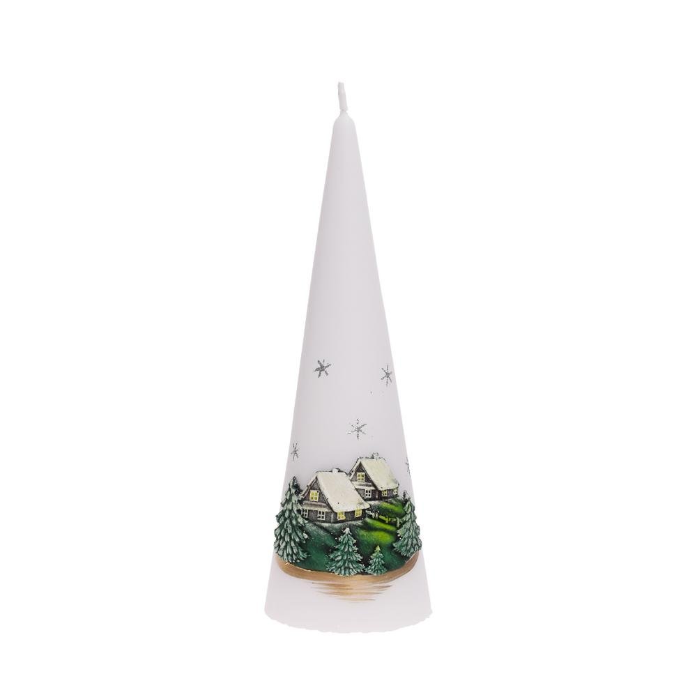Dekorácia Zimný domček kužeľ7x20 biely