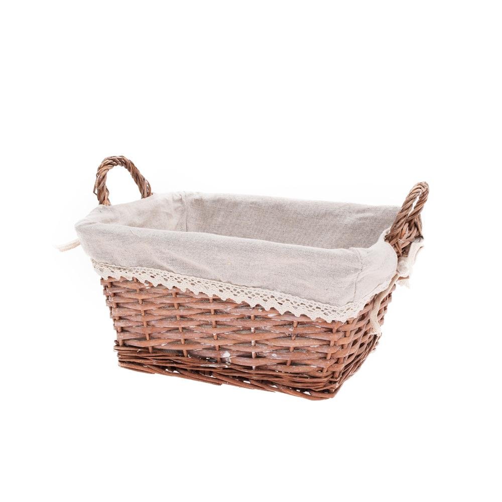 Prút. košík obdĺžnik šedý s rúčkou biela látka 28x23x15cm