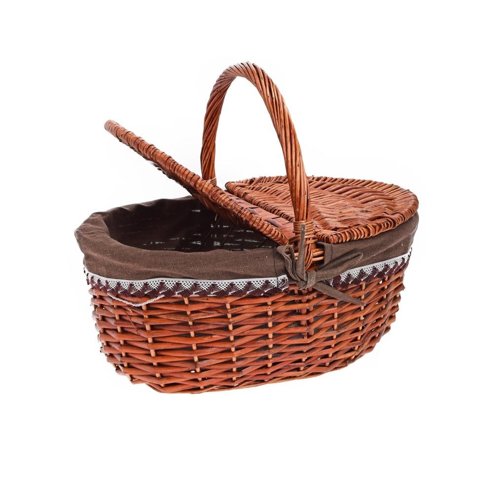 Dekorácia Prút. piknikový košík ovál tm. hnedá s rúčkou tm.hnedá látka 38x28x17x36cm