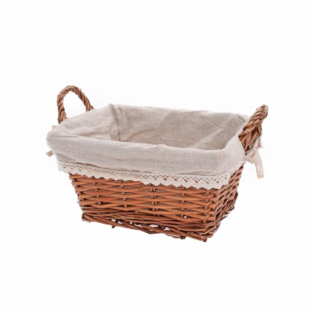 Dekorácia Prút. košík obdĺžnik hnedý s rúčkou biela látka 28x23x15cm