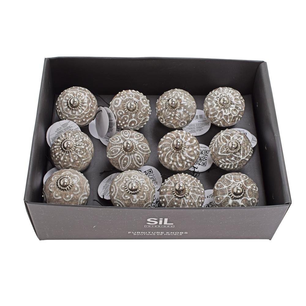 Dekorácia Úchytka na nábyt. rustik 6,5x4cm sivá/biela hh5609p