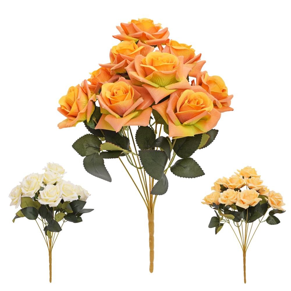Dekorácia Kytica ruža, zeleň mix/3f 43cm