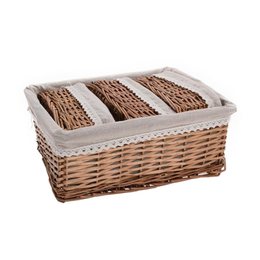 Dekorácia Prút. košík s/2 obdĺžnik sv.hnedý biela látka 40x30x16cm + 24x16x11cm