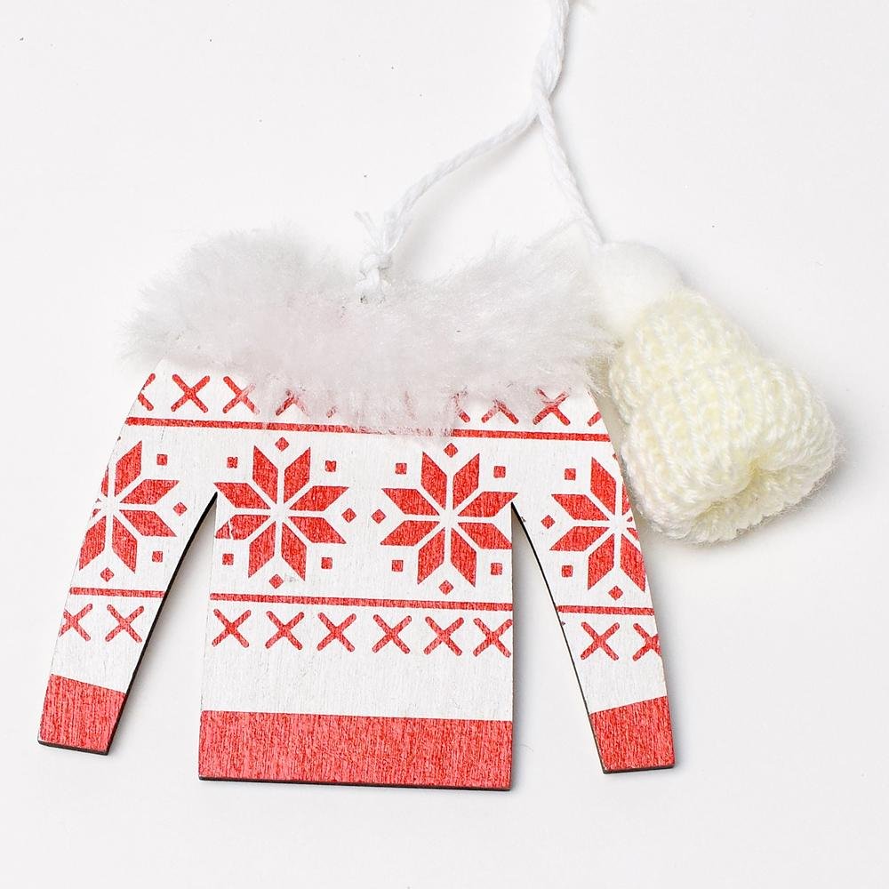 Dekorácia Záves sveter drevo biely 20x8,5cm